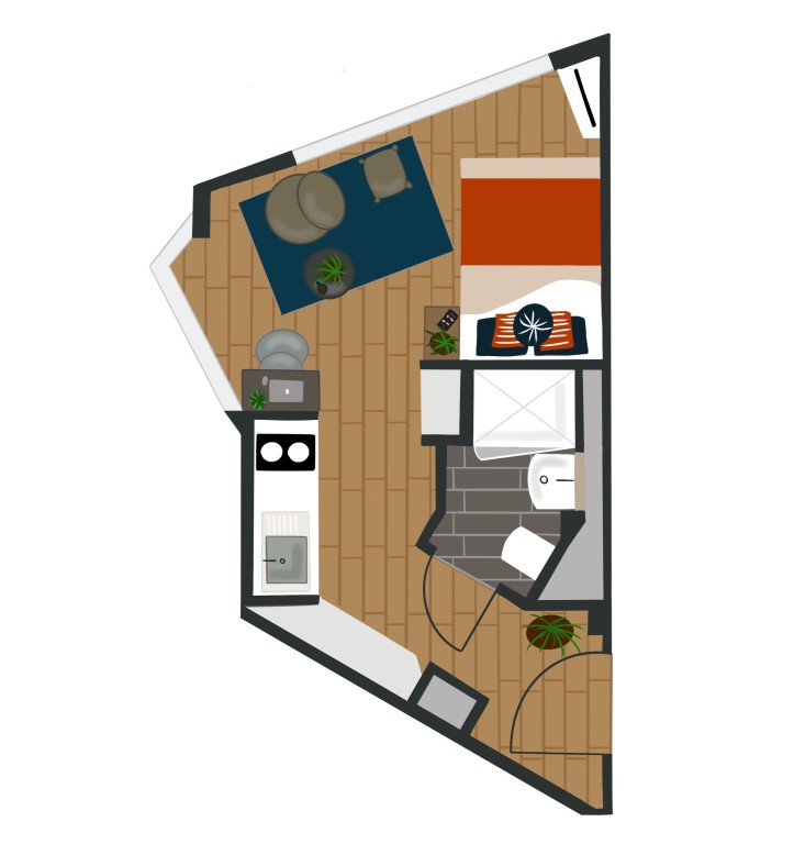 1 Baths • Studio • Studio 220 sqft