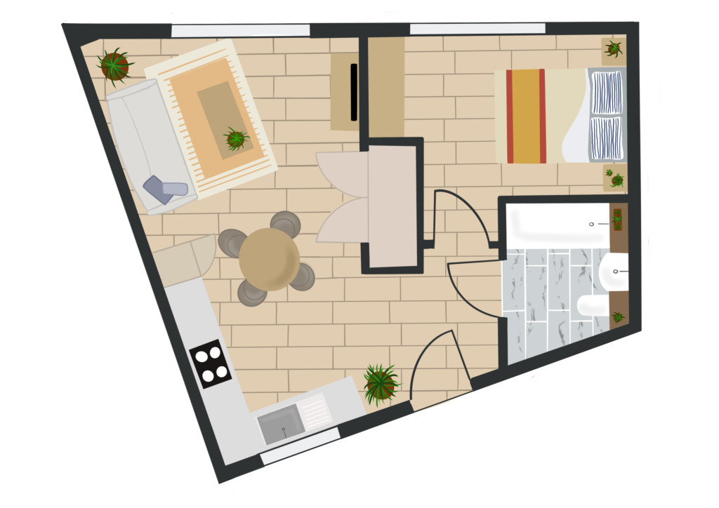 1 Baths • 1 Bed • 1 Bed 495 sqft
