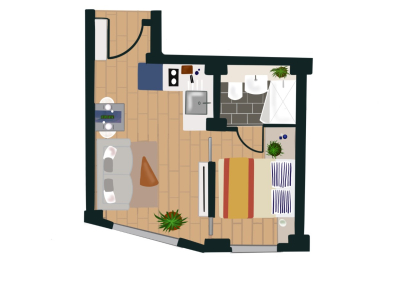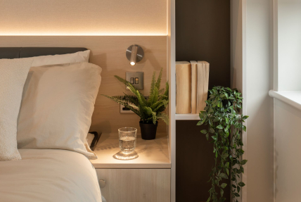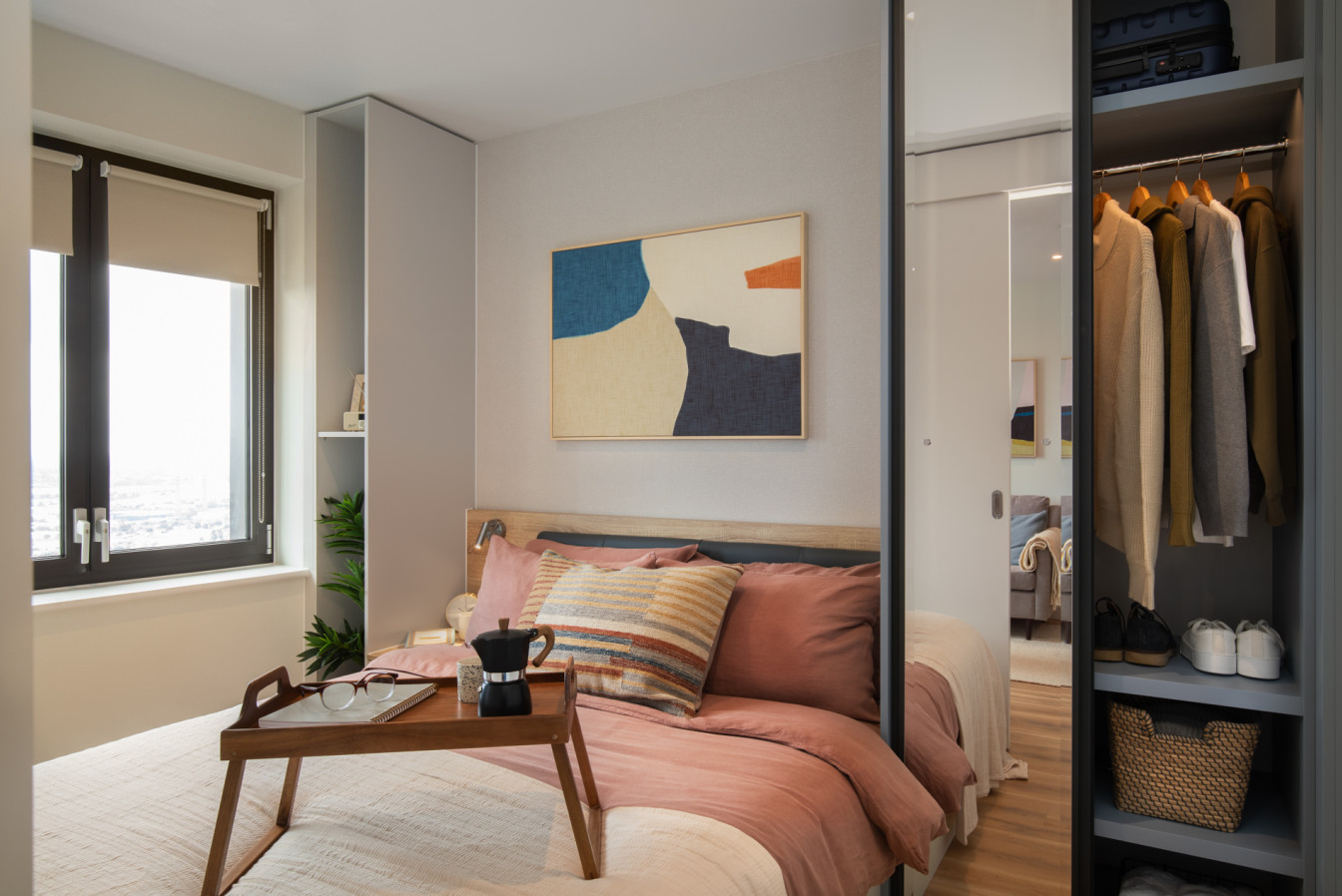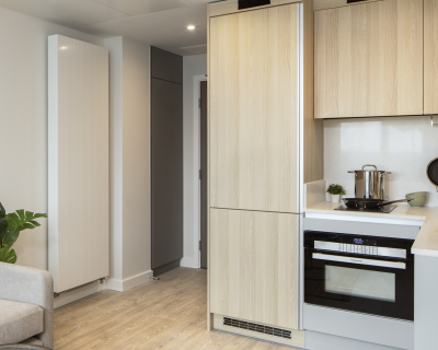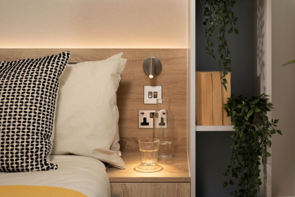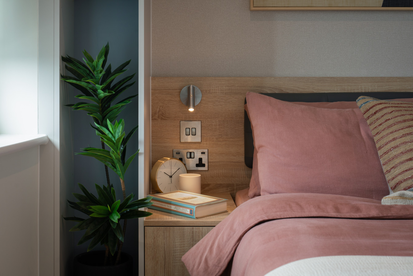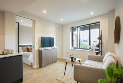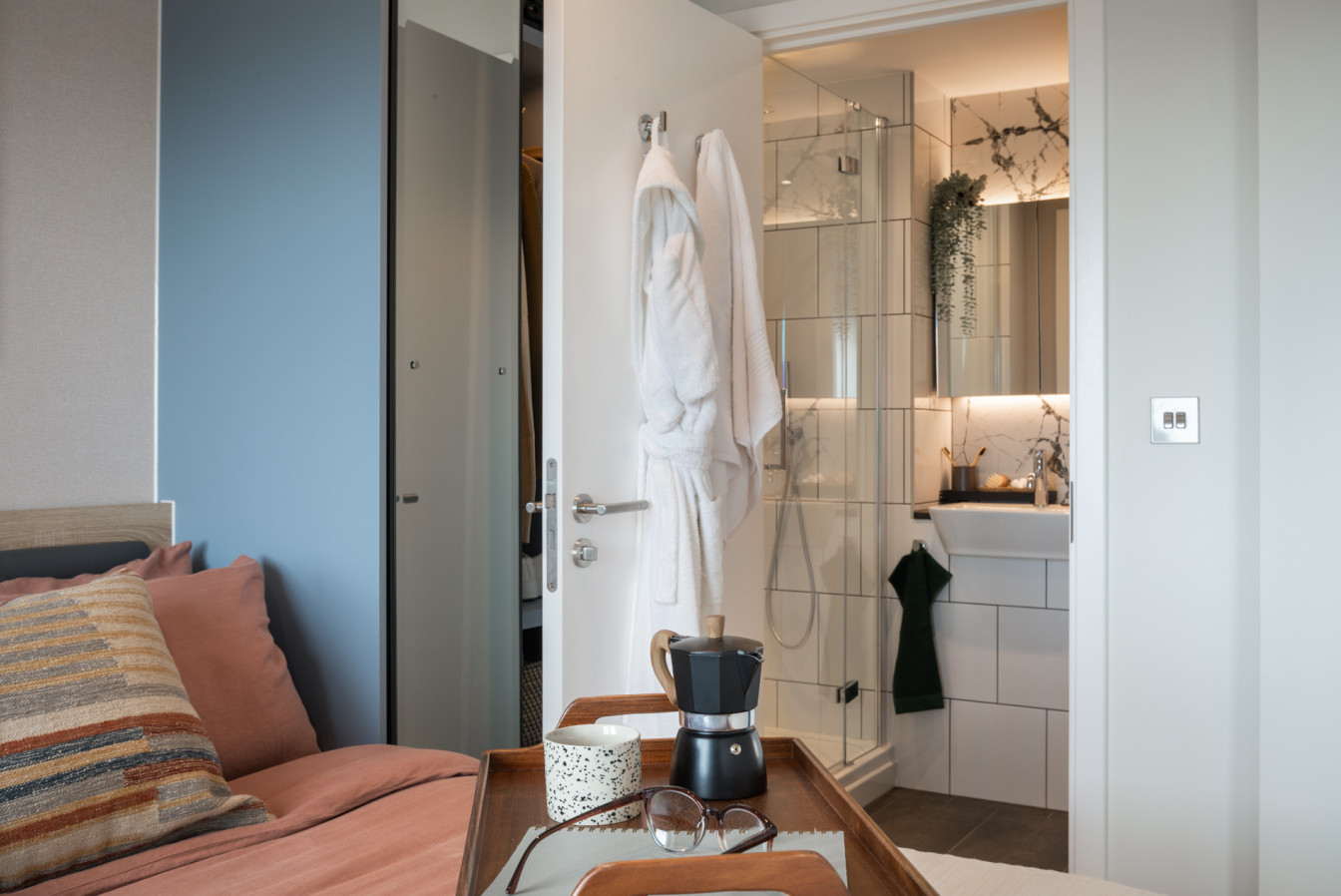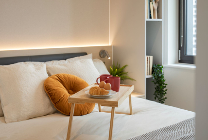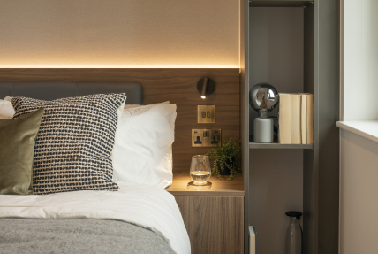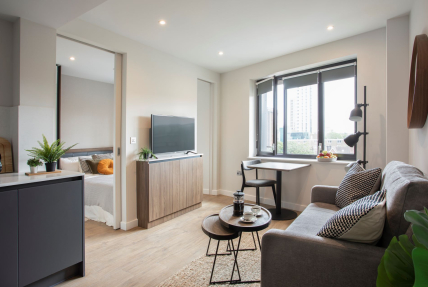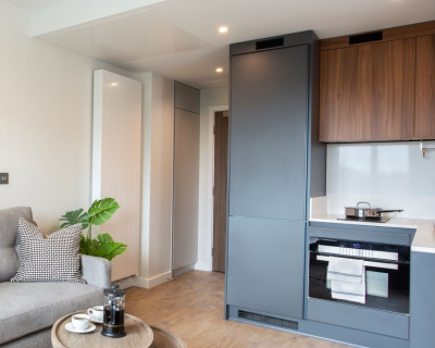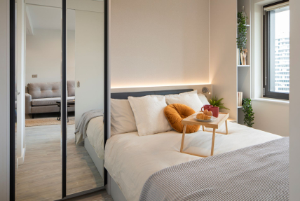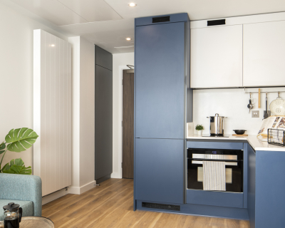 Available in three different colour palettes, our apartments have 1GB WiFi throughout, kitchens with integrated appliances (oven & microwave) and ottoman beds that lift to provide storage underneath. Rental prices differ dependent on location in the building.