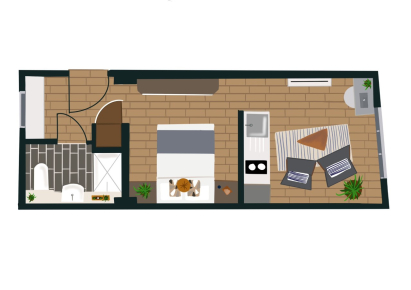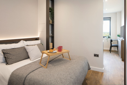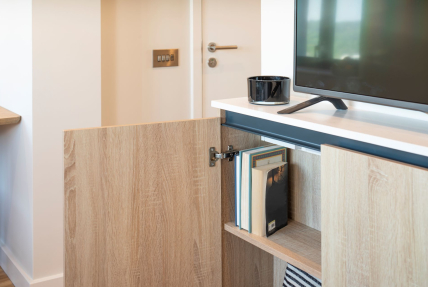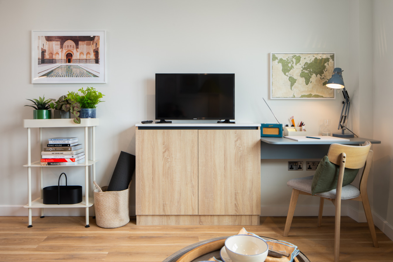 Our all-inclusive roomy studios have more space and come with either two armchairs or a sofa. Our Roomy 2 floorplans have king size beds and larger bathrooms that are adaptable for wheelchair users. A bit more space for you to enjoy alone, with friends or even for a cuppa with your neighbour.