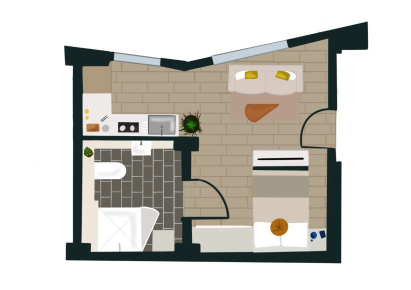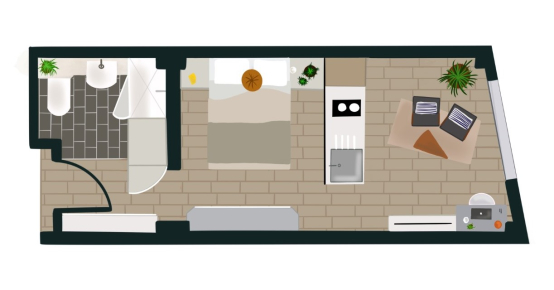 | Typical Studio Apartment | Enclave Roomy Studio Apartment | |
