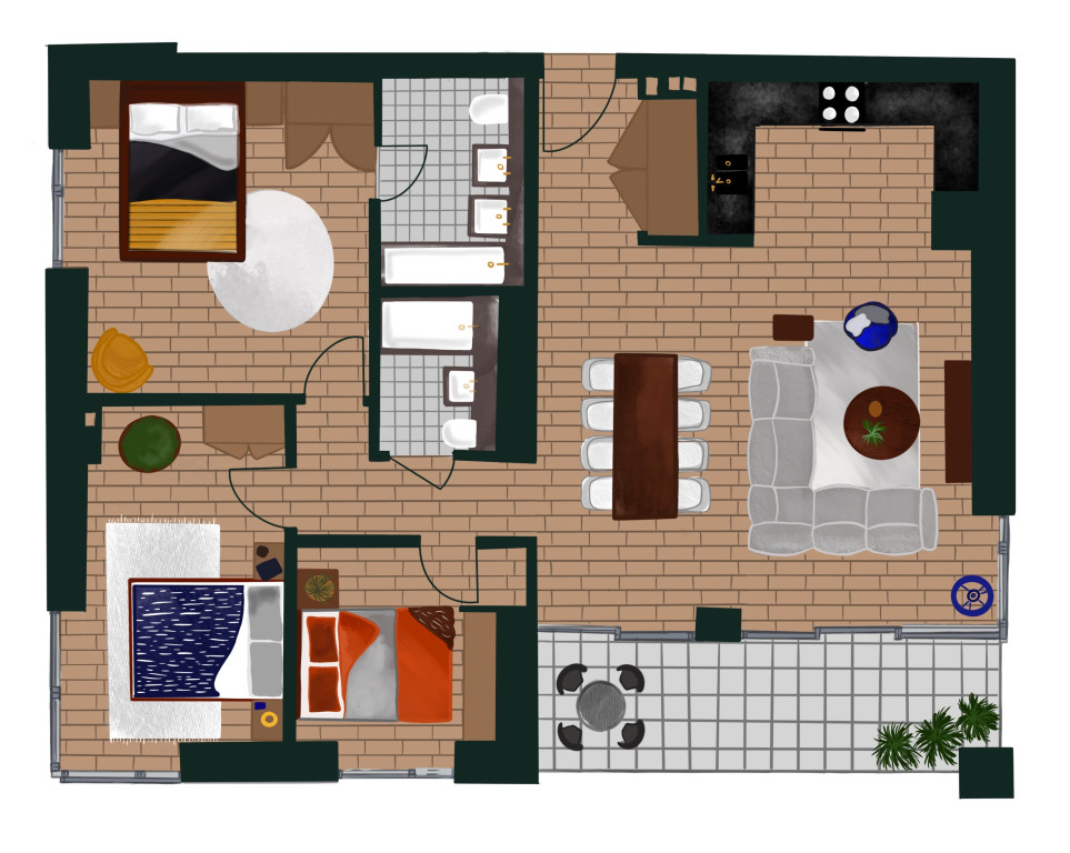 2 Baths • 3 Beds • 3 Beds 1109 - 1109 sqft