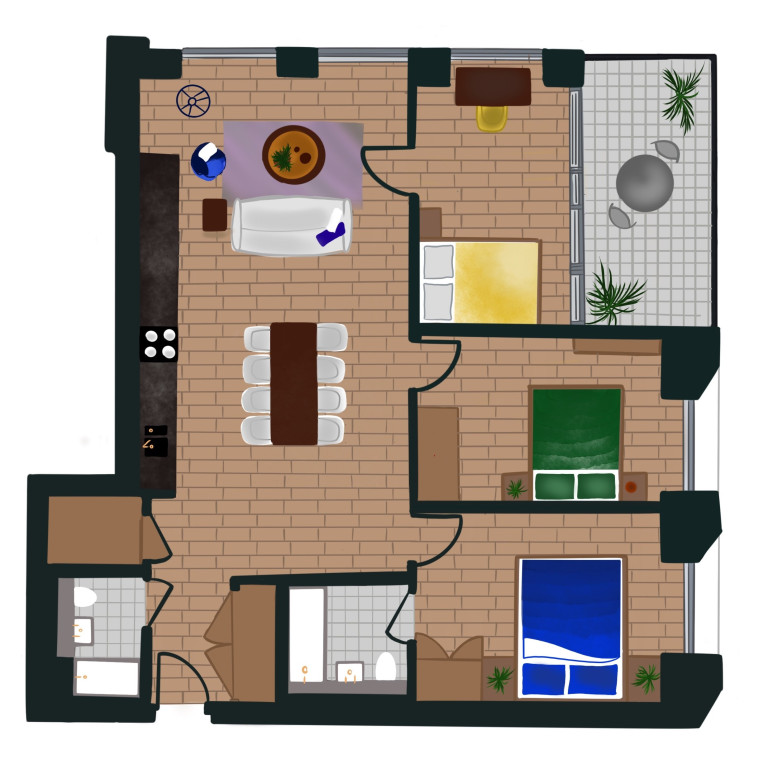 2 Baths • 3 Beds • 3 Beds 1098 sqft