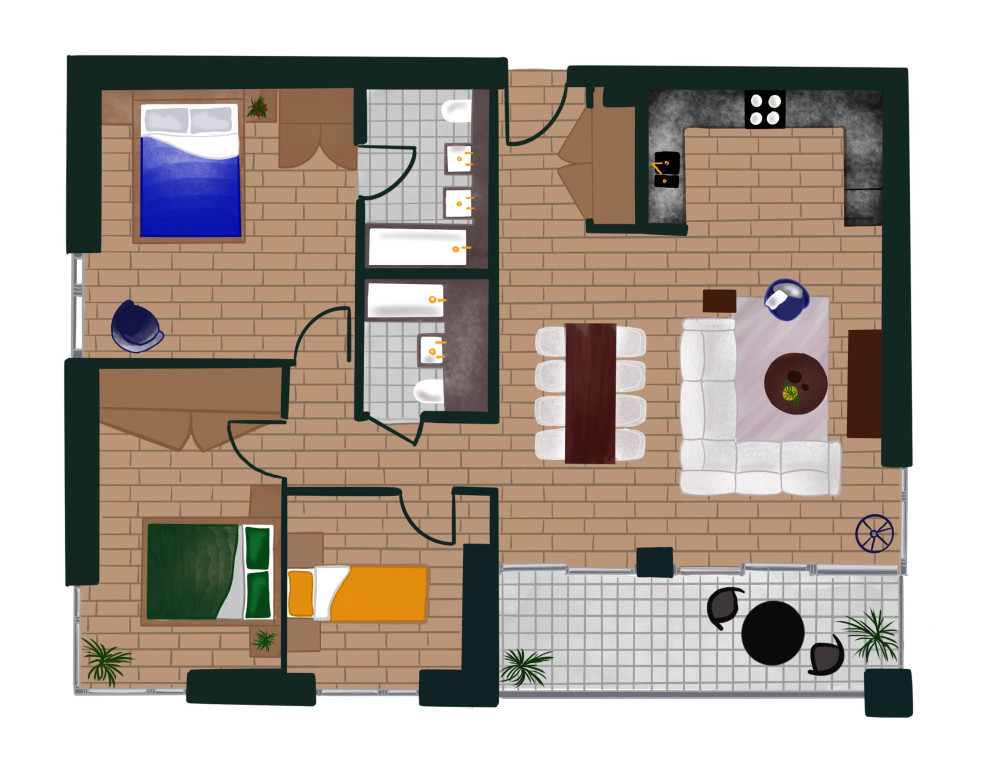 2 Baths • 3 Beds • 3 Beds 1109 - 1109 sqft
