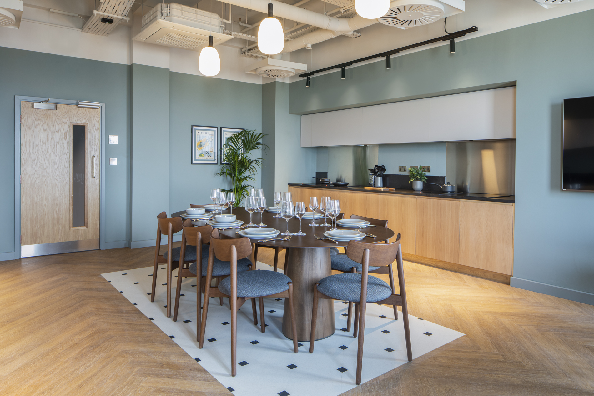 Located on the first and second floors of the building, with seating for 6-10 guests. Complete with a fully fitted kitchen so hosting is a breeze. Available to book at no extra cost to your rent.