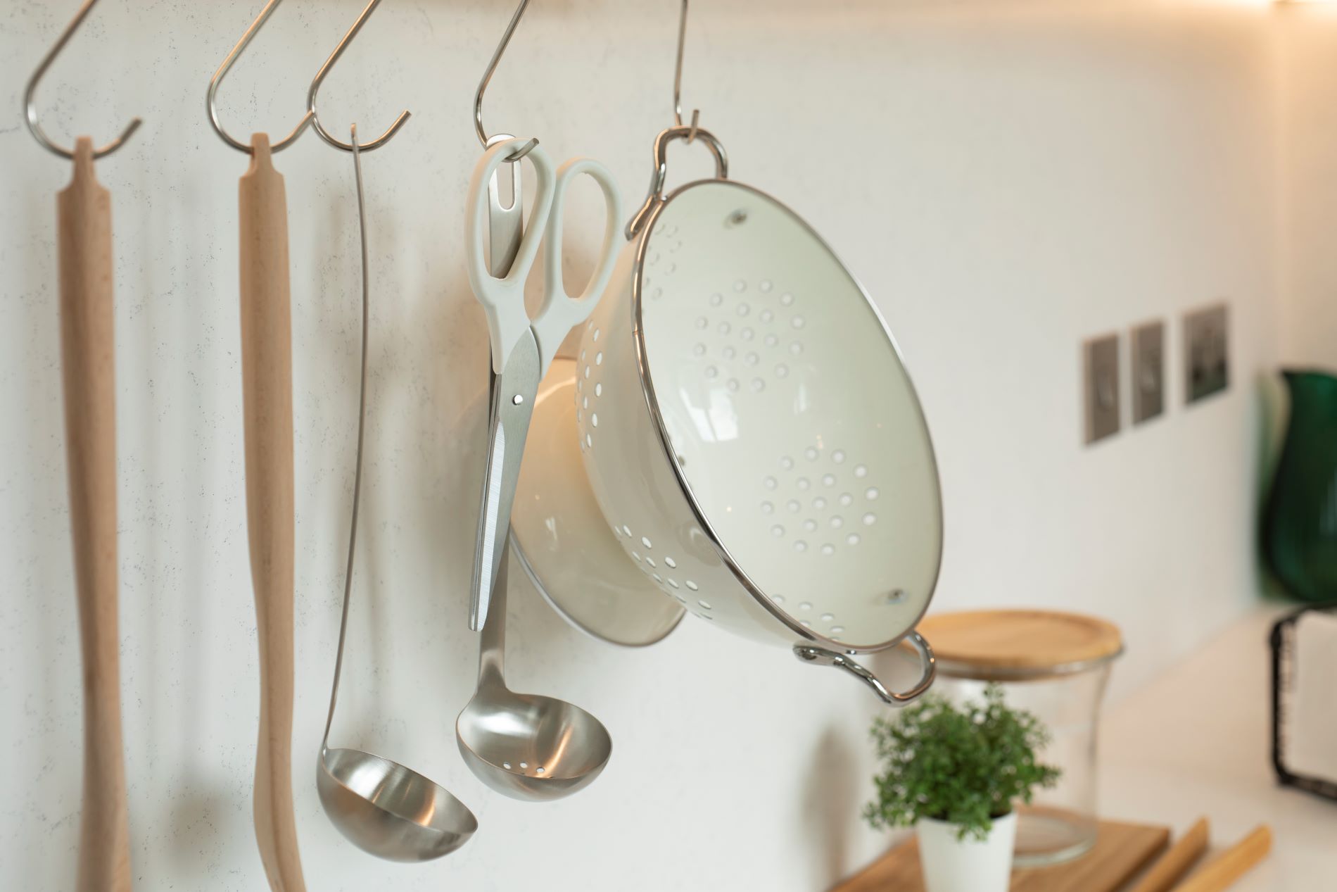 Maximise kitchen space. Keep your worktops free for creating culinary masterpieces by using innovative storage solutions. Use cabinet and drawer organisers, S-hooks and baskets for hanging pots and pans, and smart recycling bins to stop empty containers gathering on the side.