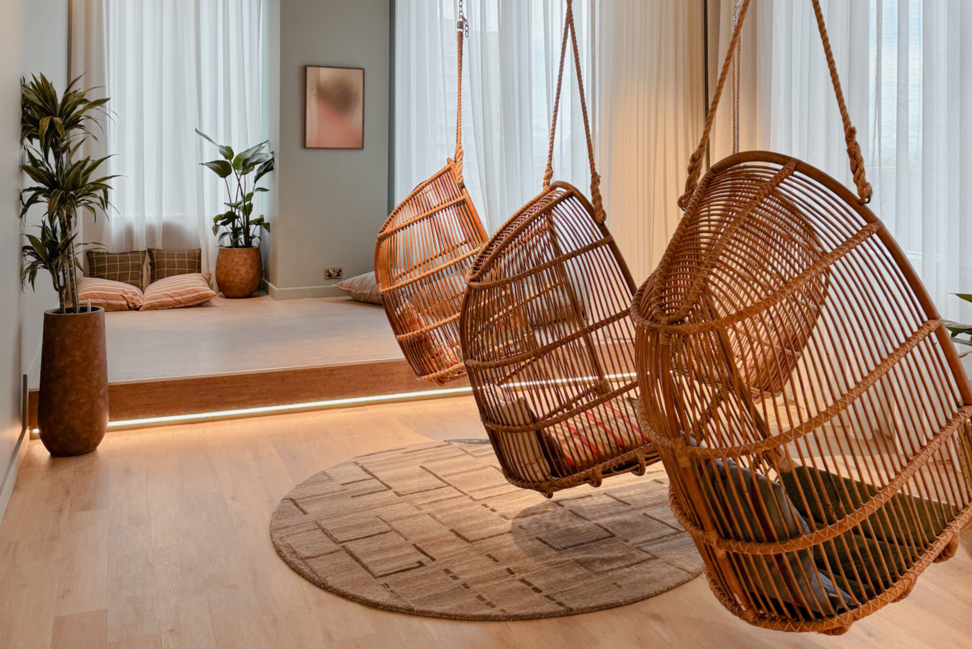 The Switch-off Studio encourages residents to slow down and take some intentional screen-free time. With secure lockers for devices, swing chairs and comfy seating, it’s a space dedicated to rest.