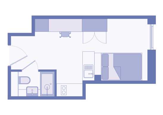 Our Comfy Studios come in a range of shapes and sizes, from 20.4 to 24.8 sq ft, so you can pick the one that feels right for you. Some even come with a terrace, perfect for a bit of fresh air - giving you choice, space, and a spot to make your own.